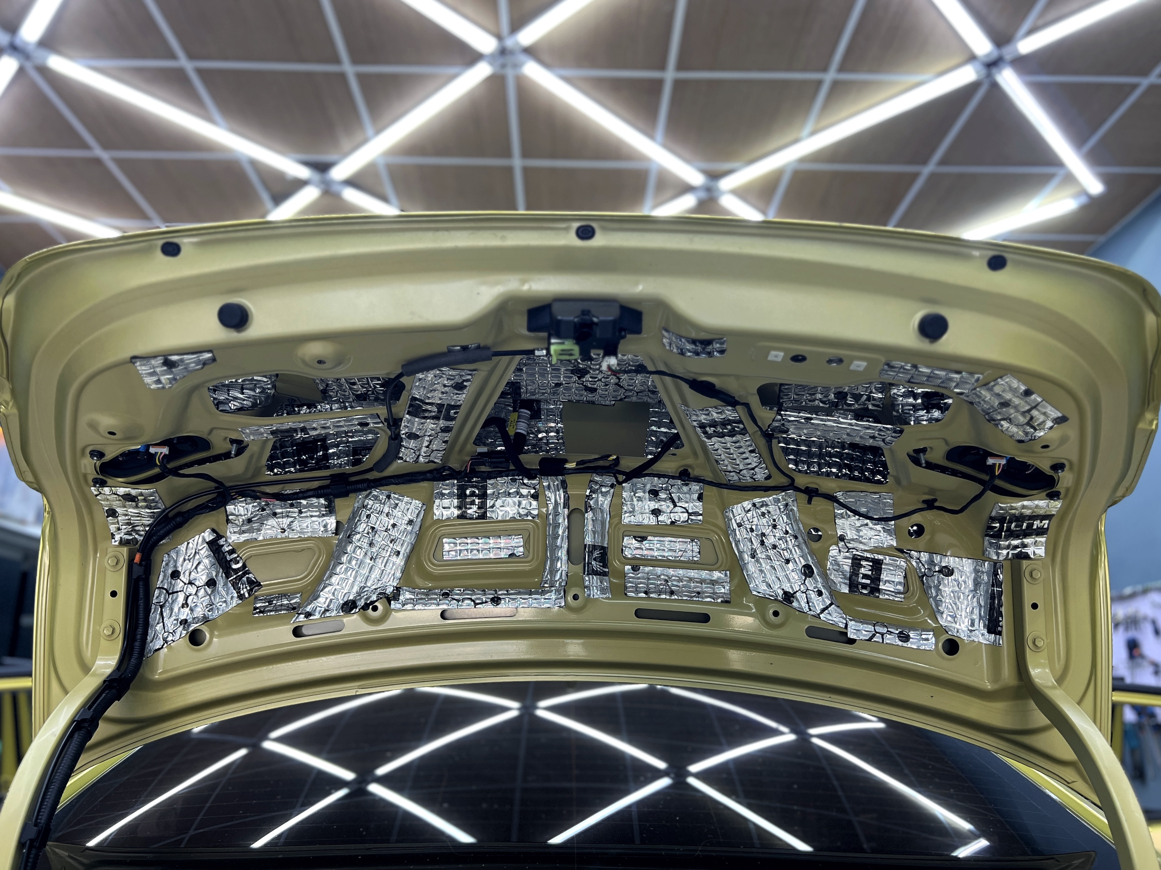 Для виброизоляции крыши багажника используем самый легкий материал Шумофф M2, что бы свести увеличение веса к минимуму. После чего переходим к обшивке.