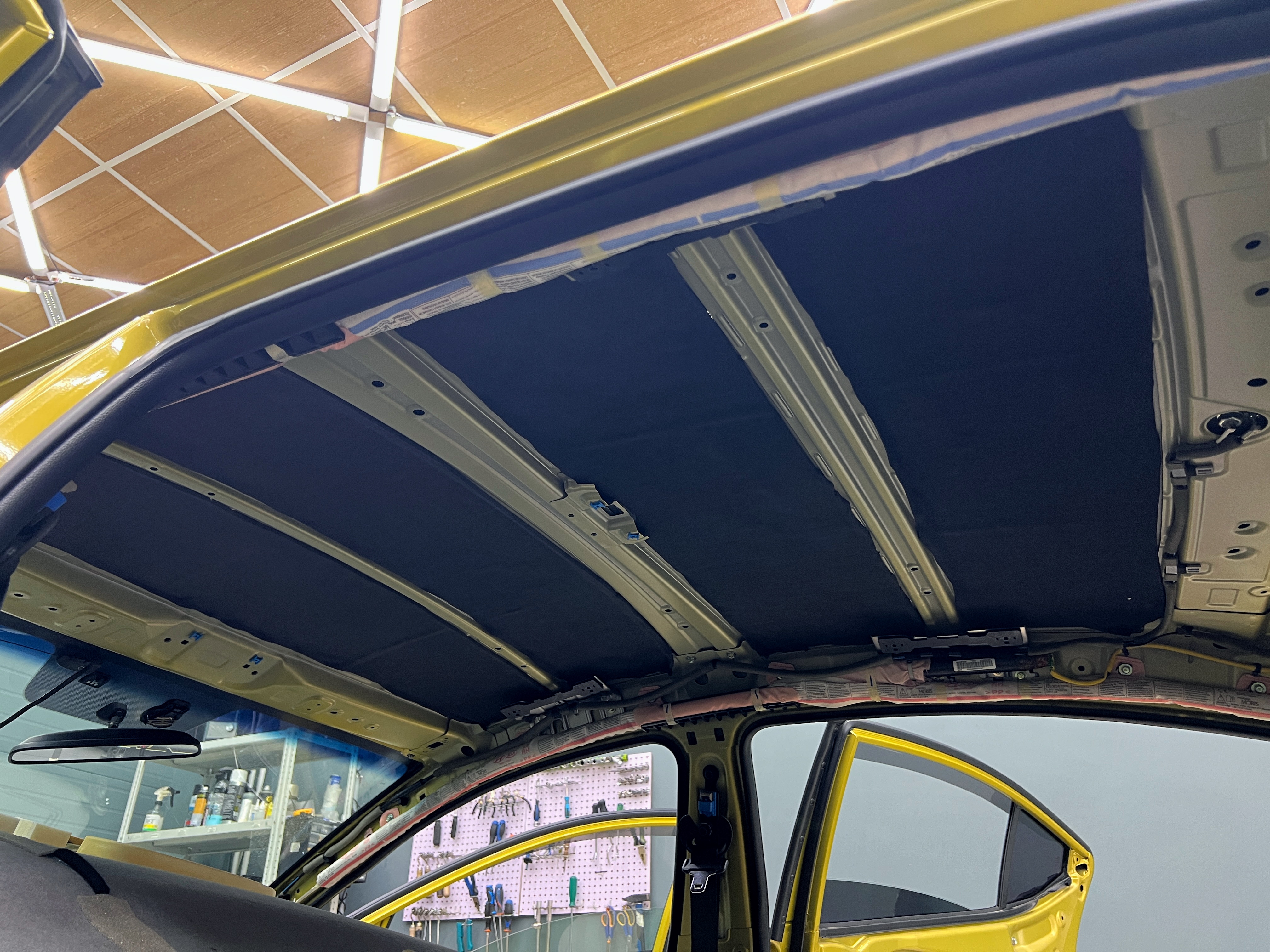 Оклеиваем всю поверхность крыши Элантры между ребер жесткости.